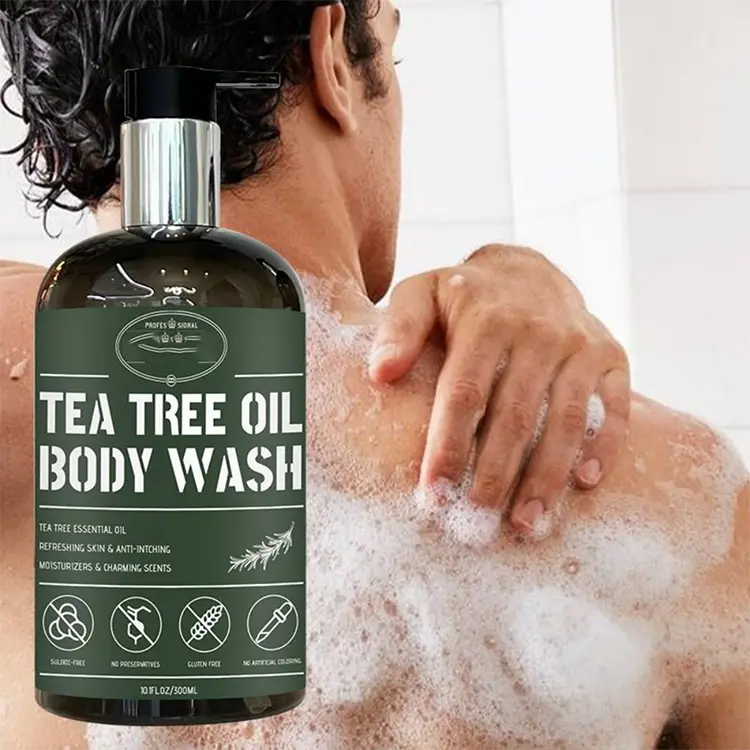 A differenza dei normali detergenti di schiuma che rimuovono gli oli della pelle, il nostro lavaggio del corpo degli uomini dell'olio di tè alla moda può rimuovere delicatamente sporcizia, sudore e impurità pur mantenendo gli oli necessari per la pelle. L'olio dell'albero del tè aggiunto è un estratto vegetale ben studiato che aiuta a ridurre i batteri che causano l'acne, leniscono l'irritazione della pelle e inibisce i microrganismi produttori di odori. Questo non è solo un gel da bagno, ma una soluzione completa per gli uomini che desiderano una cura della pelle efficiente e naturale. Questo prodotto offre migliori effetti idratanti con un minor numero di additivi sintetici, rendendolo la scelta preferita di consumatori attenti all'ambiente in tutto il mondo.